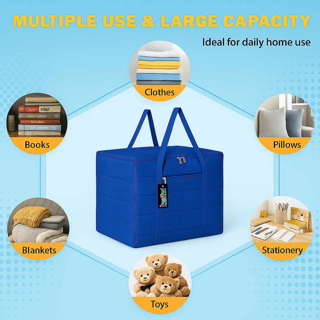 Whether you’re looking to store seasonal blankets or precious sarees, this jumbo blanket cover caters to a variety of storage needs. The lightweight structure makes it easy to handle, while its compact design allows seamless stacking or fitting into tight spaces. Perfect for travelers and homemakers alike, this bag can double as a space-saving storage organizer for various household goods, maintaining their quality over time.