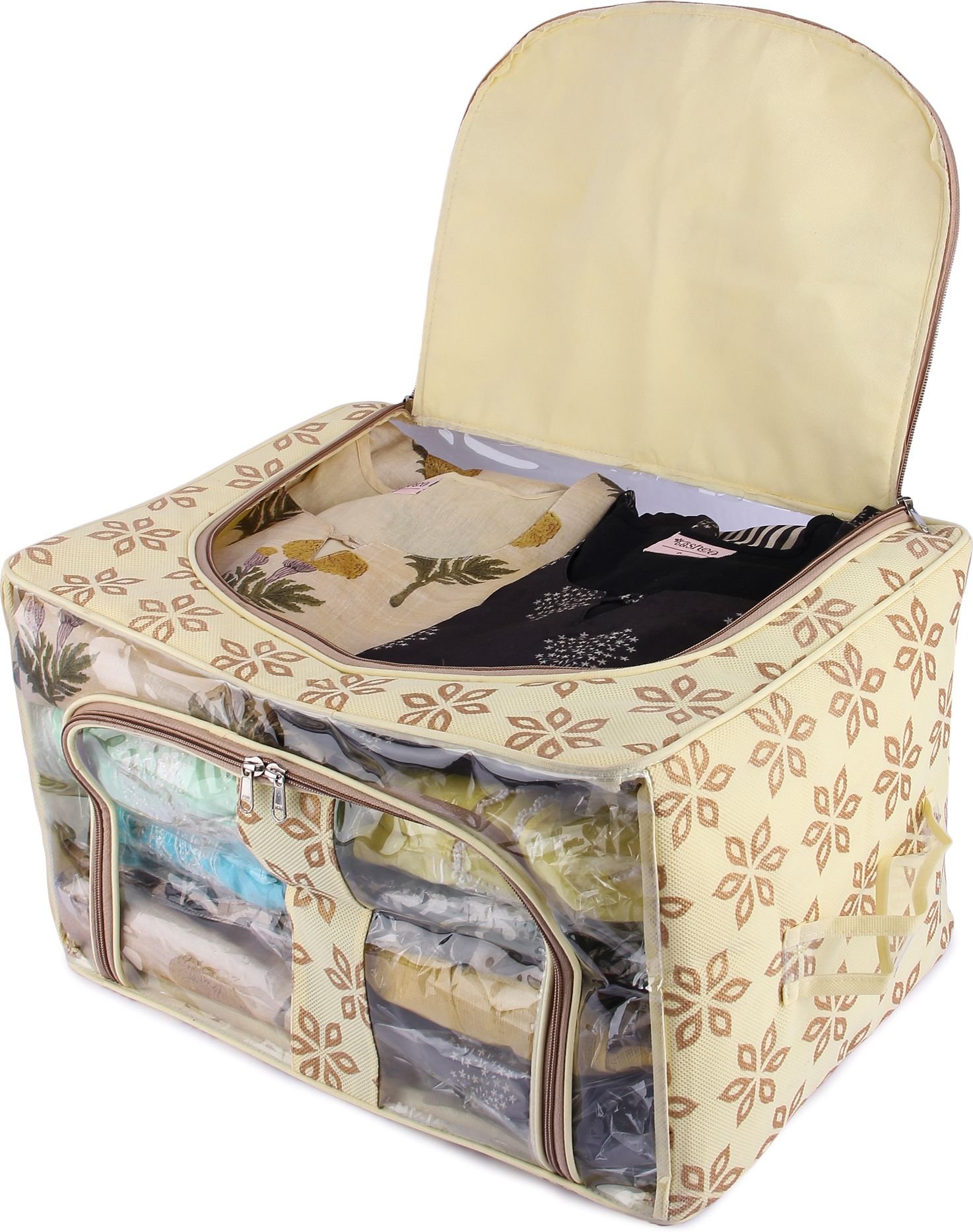 Durable See-through Design: Use to Easily Identify Your Essentials From its Transparent look no need to find your clothes in mesh, they are just Nylon PVC bags, with no metal support inside, which is super easy to fold away into drawer or cabinet to save space.::Special Features : This transparent Wardrobe storage bags are easy to carry and are dust & Moisture Proof also comes with dual zipper closure ( Front & Upper chain closure)::Specific Use of Product: Fits in wardrobe, can be used to store in beds you can keep (10 trousers + 15 shirts) or 15 sari or 15 small size bedsheets (any 1 of them)